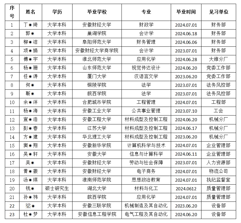 为认真落实省国资委、省委宣传部、省财政厅和人社厅《关于做好2024年安徽省国有企业就业见习工作的通知》(皖国资考分[2024]70号)精神,伟德源自英国始于1946公开招募大学生就业见习,经公司相关单位筛选确定,23名见习生基本信息对外公示,公示期5天(2024年9月5日至9月9日),接受社会监督。监督电话:0551-82189867,0551-82189811。